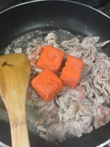 水分が出るので割と早めの段階で入れて先にパラパラにしておくといいかもしれません。